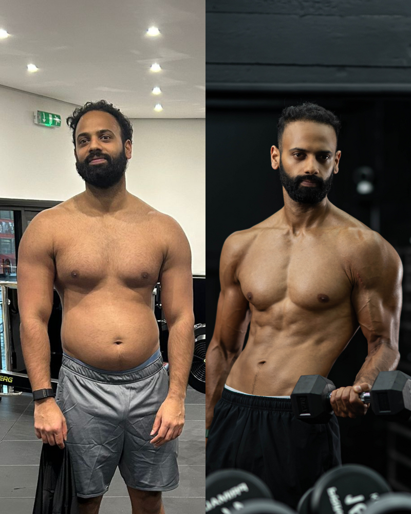 With new perspective from fatherhood, Arjun jumped on the FitbyVivek online coaching program. Weekly check-ins, countless calls and messages followed. I took full control of his nutrition, training, and activity.